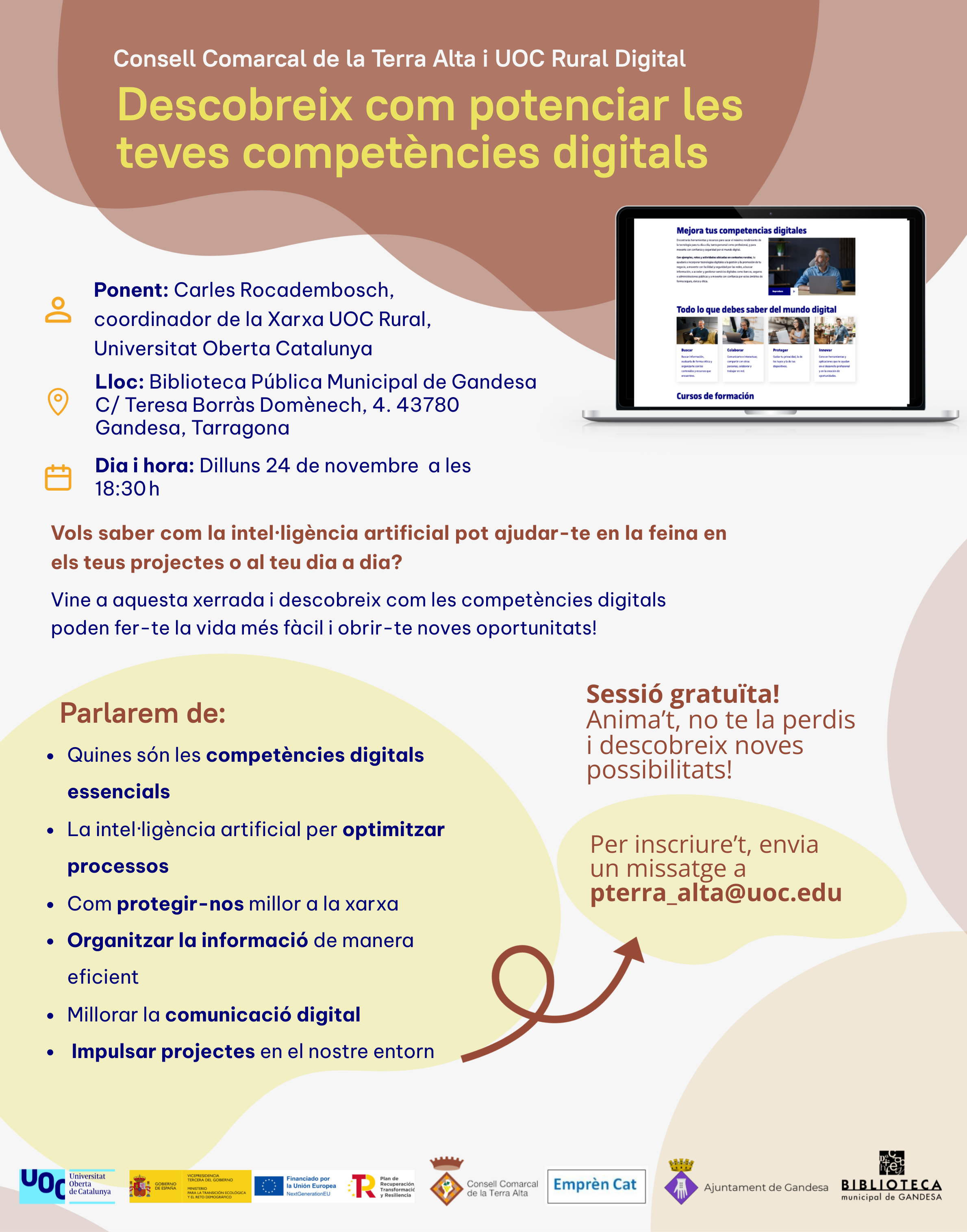 El Consell Comarcal de la Terra Alta i UOC Rural Digital organitza la xerrada : Descobreix com potenciar les teves competències digitals