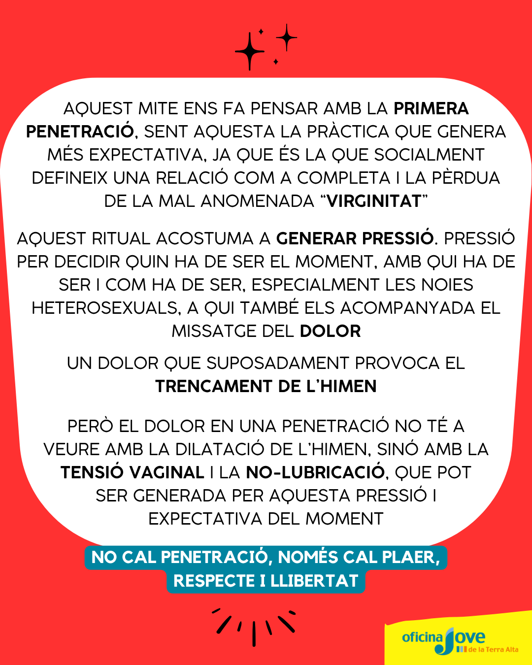 🔊 La primera vegada NO ha de fer mal. El dolor no és un requisit, ni una prova de res, ni forma part obligatòria de l’experiència sexual.