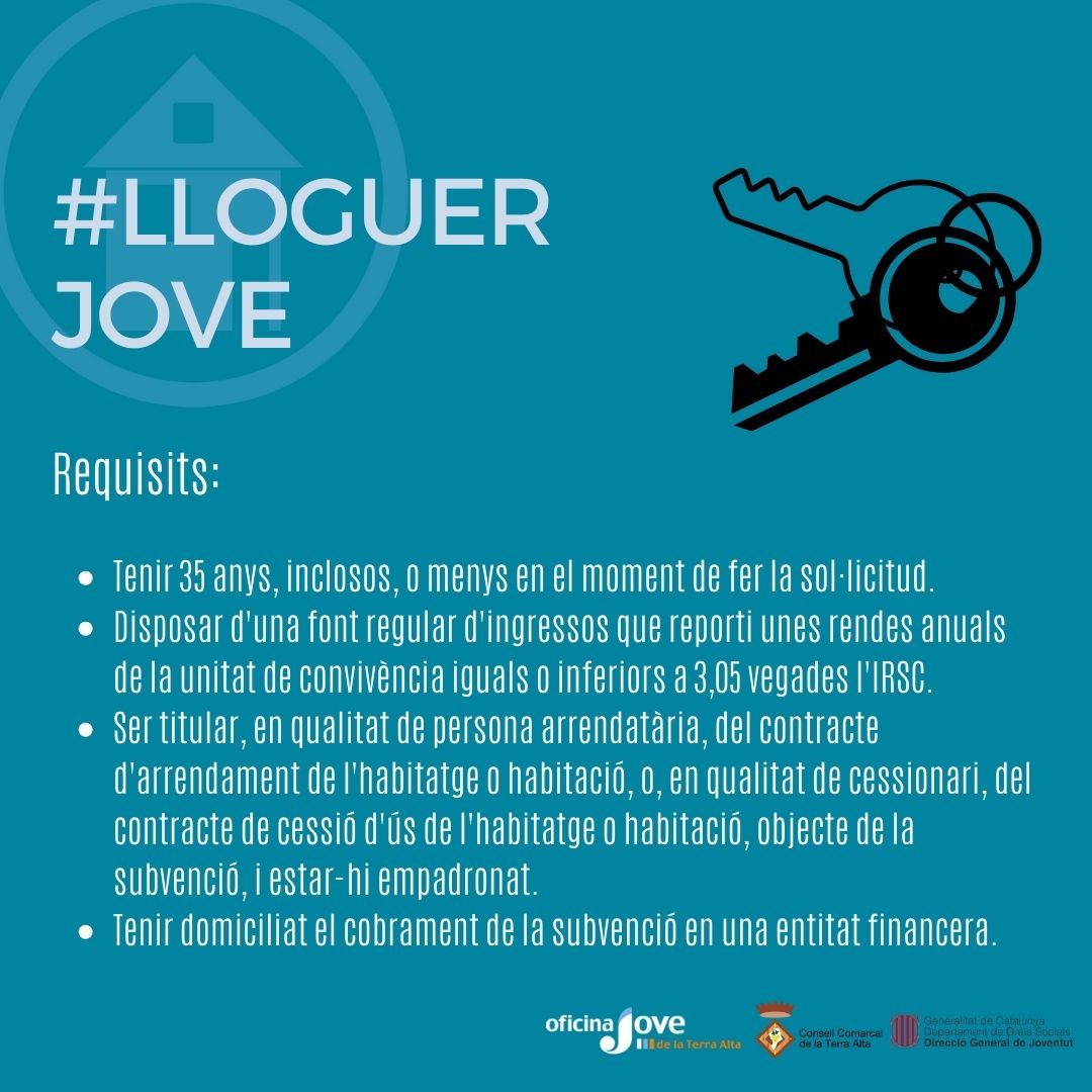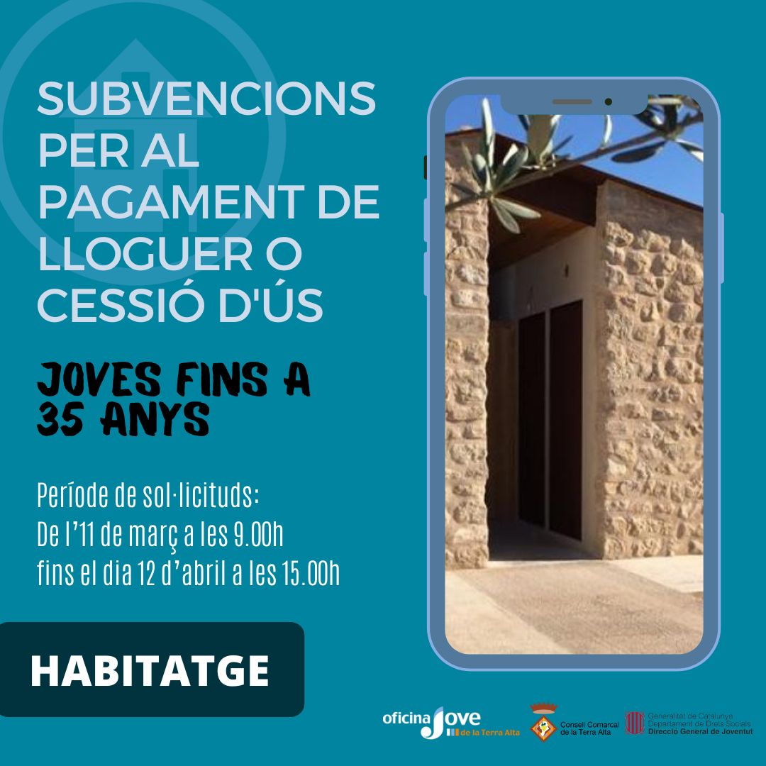 Joves! Us informem que el dia 26 de febrer es va publicar la convocatòria de subvencions per al pagament del lloguer o cessió d’ús o habitació per a l’any 2024 [...]